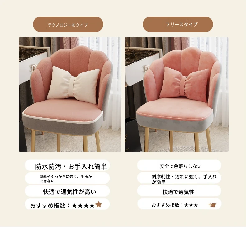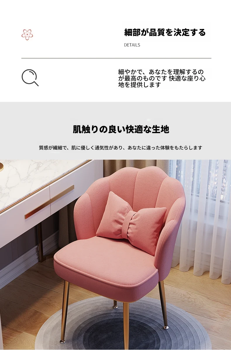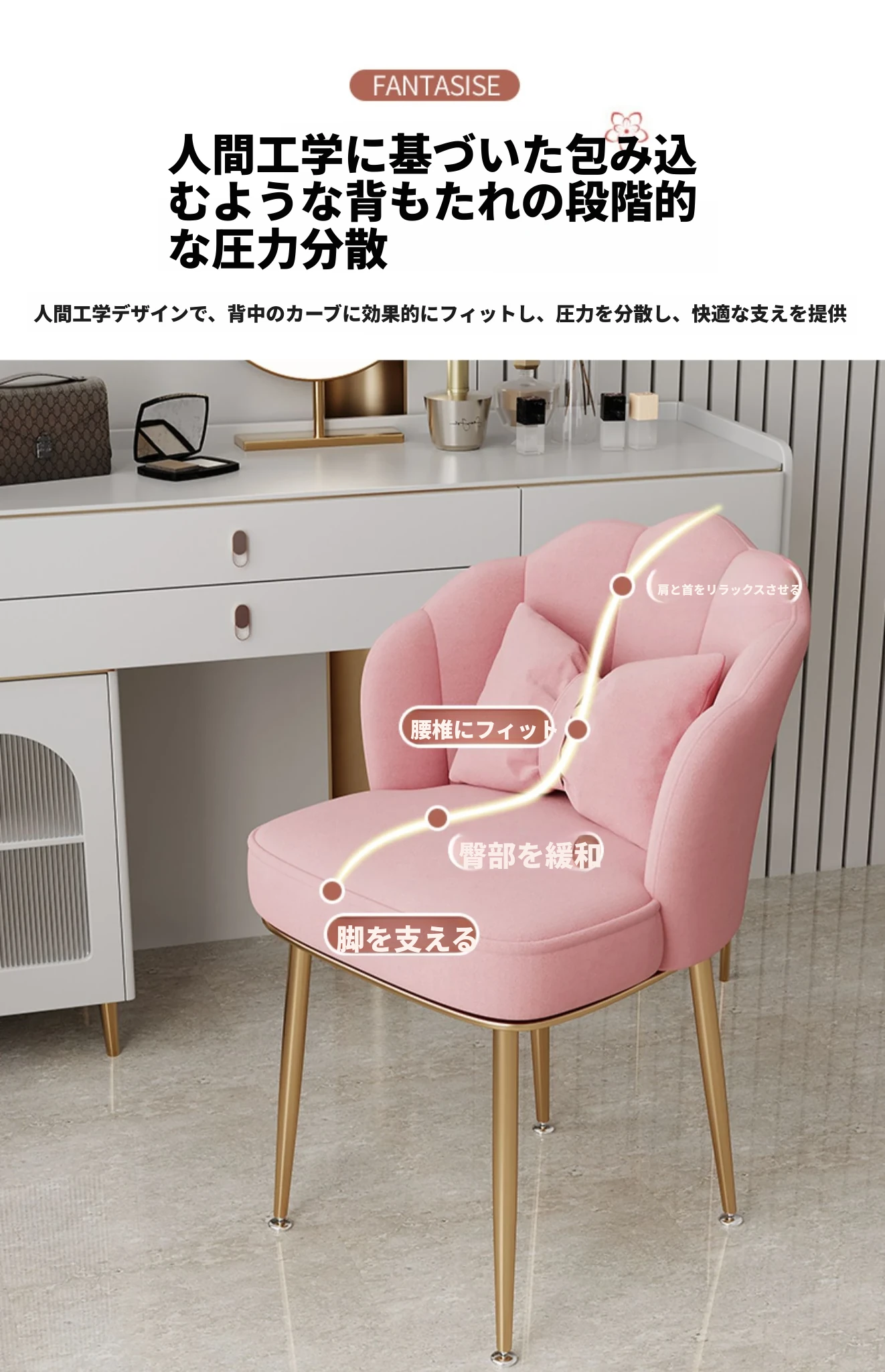 モダンでシンプルなインテリアにぴったり!女性のための寝室用ドレッシングテーブルチェア、背もたれ付きの軽やかなデザイン。ネイルアートにも最適な花びら型の化粧椅子で、毎日のビューティータイムを特別に演出します。