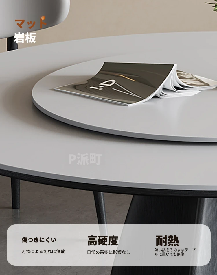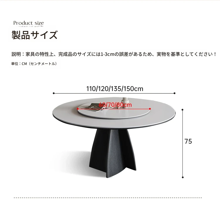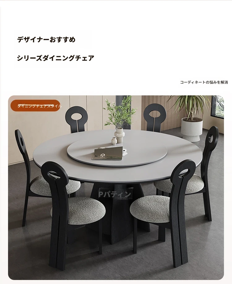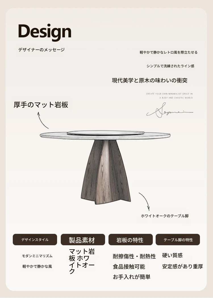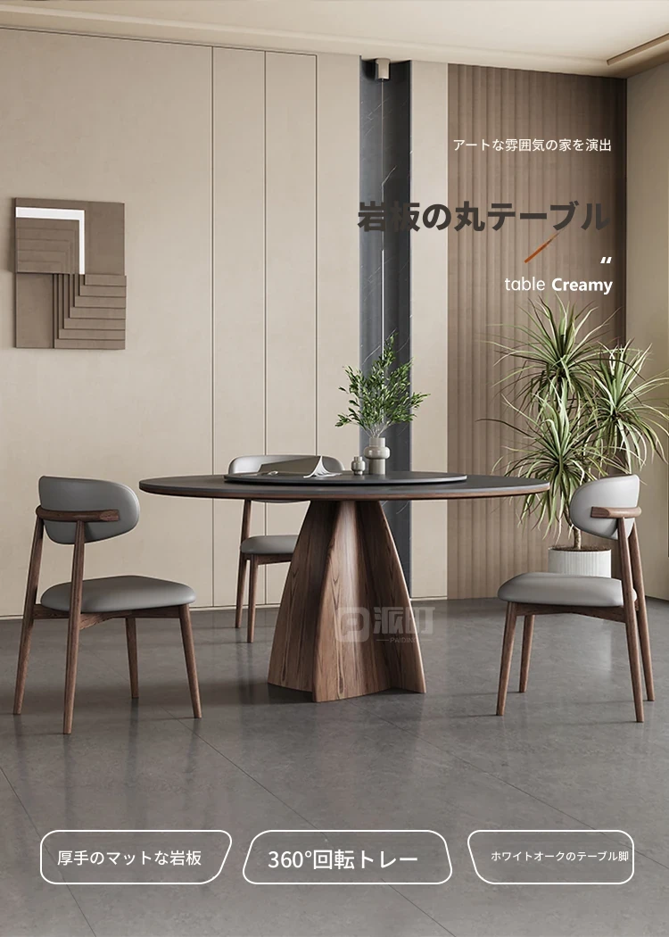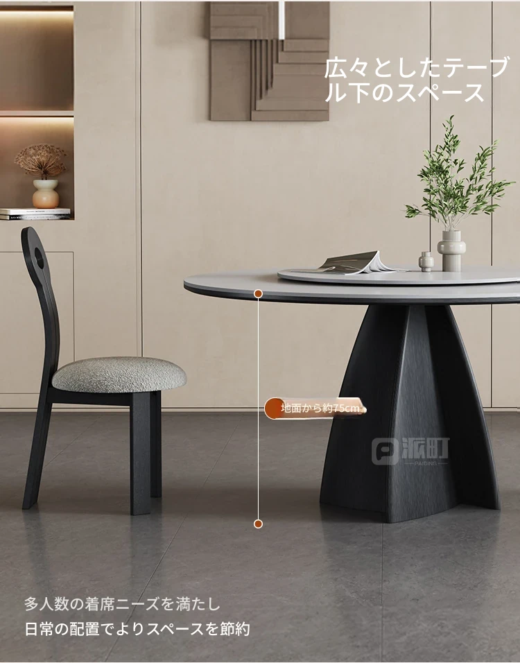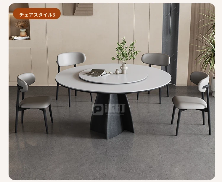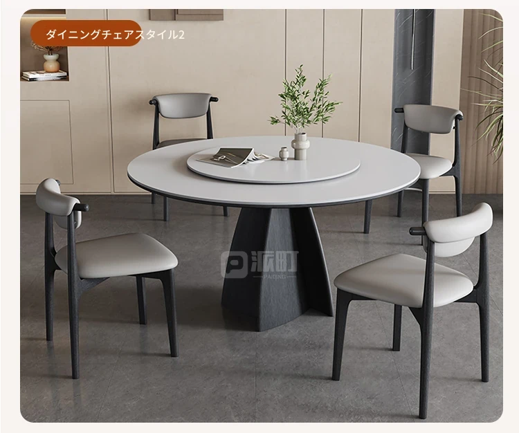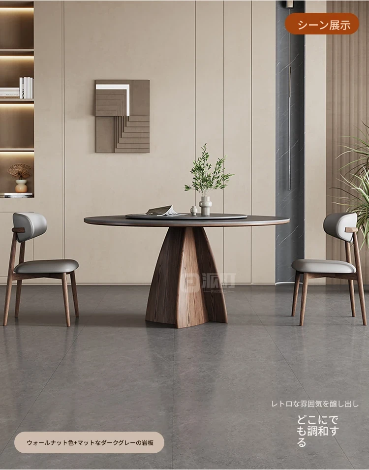 2025年新作!中古風デザインの丸型ダイニングテーブル - 小型住宅に最適!厚手の岩板使用、広々とした回転式テーブル。佛山製、家族団らんにぴったりな一品!