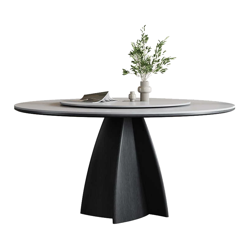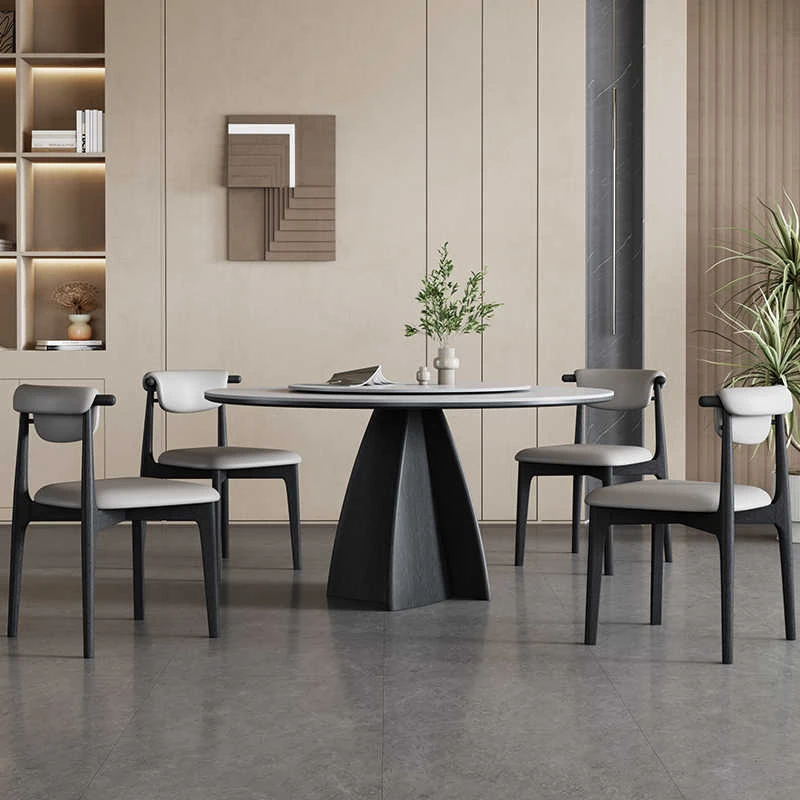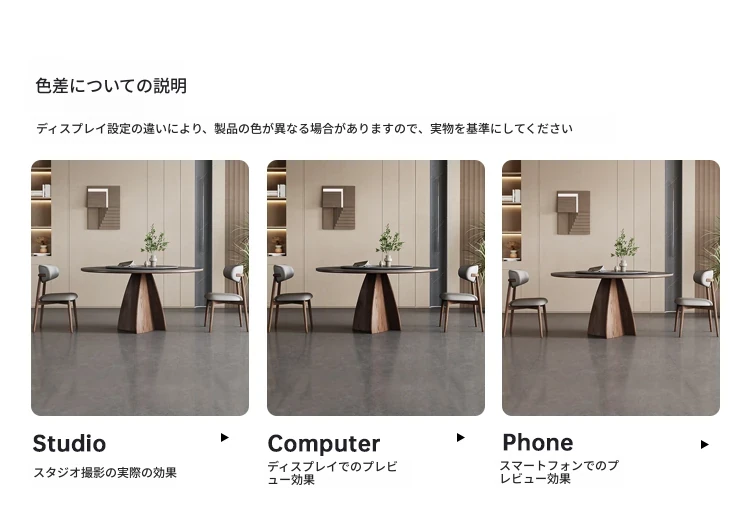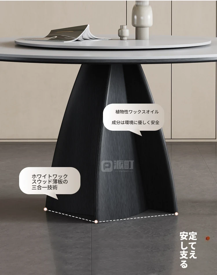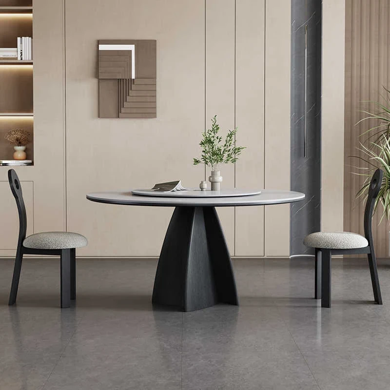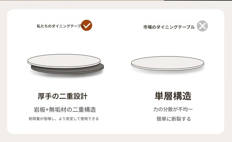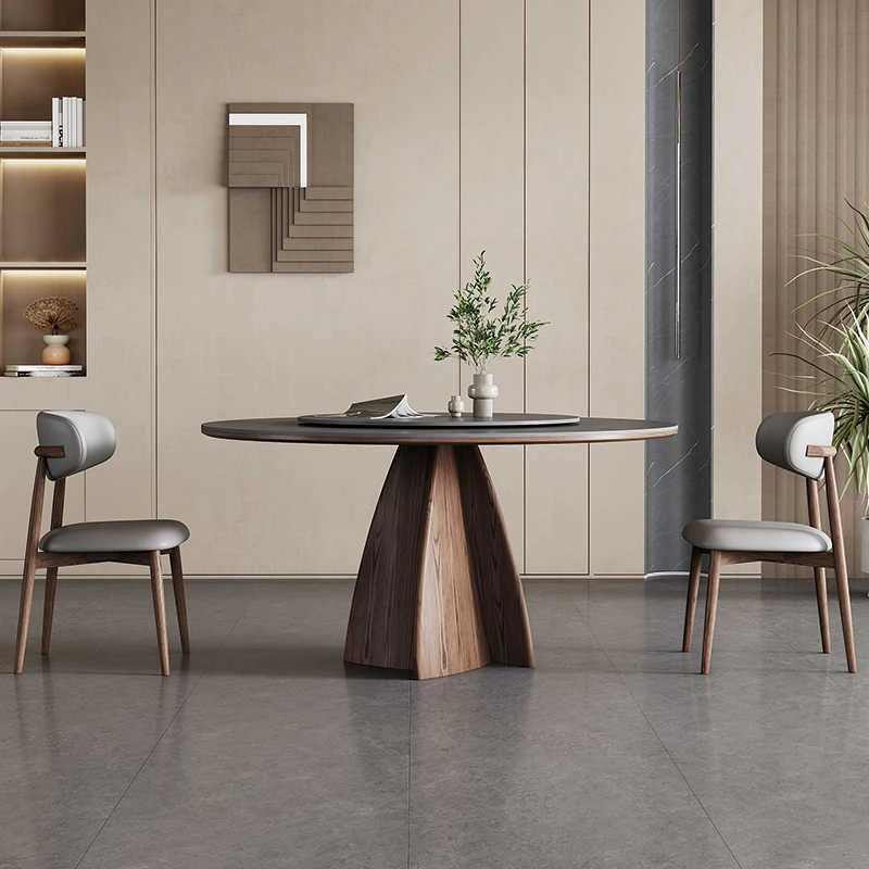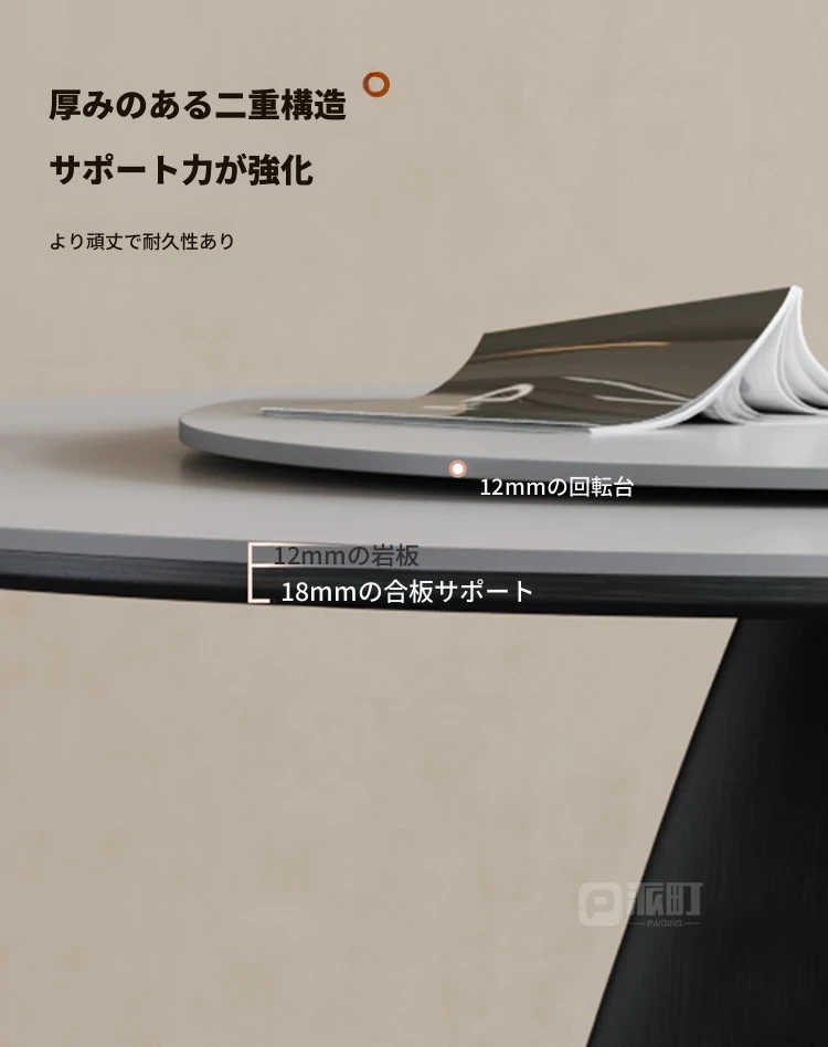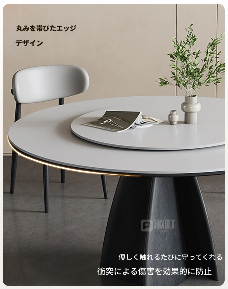2025年新作!中古風デザインの丸型ダイニングテーブル - 小型住宅に最適!厚手の岩板使用、広々とした回転式テーブル。佛山製、家族団らんにぴったりな一品!