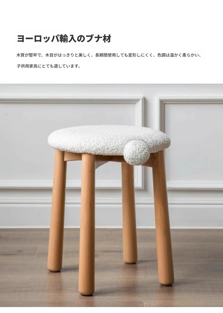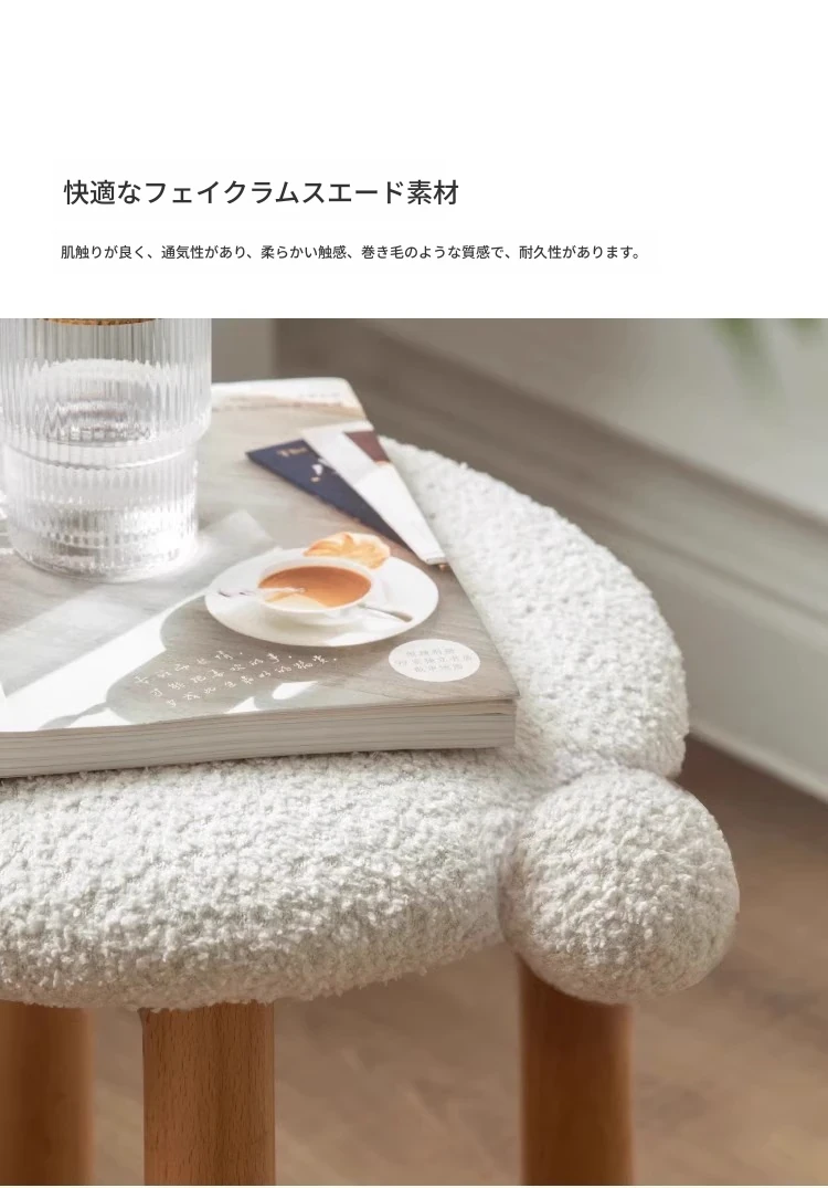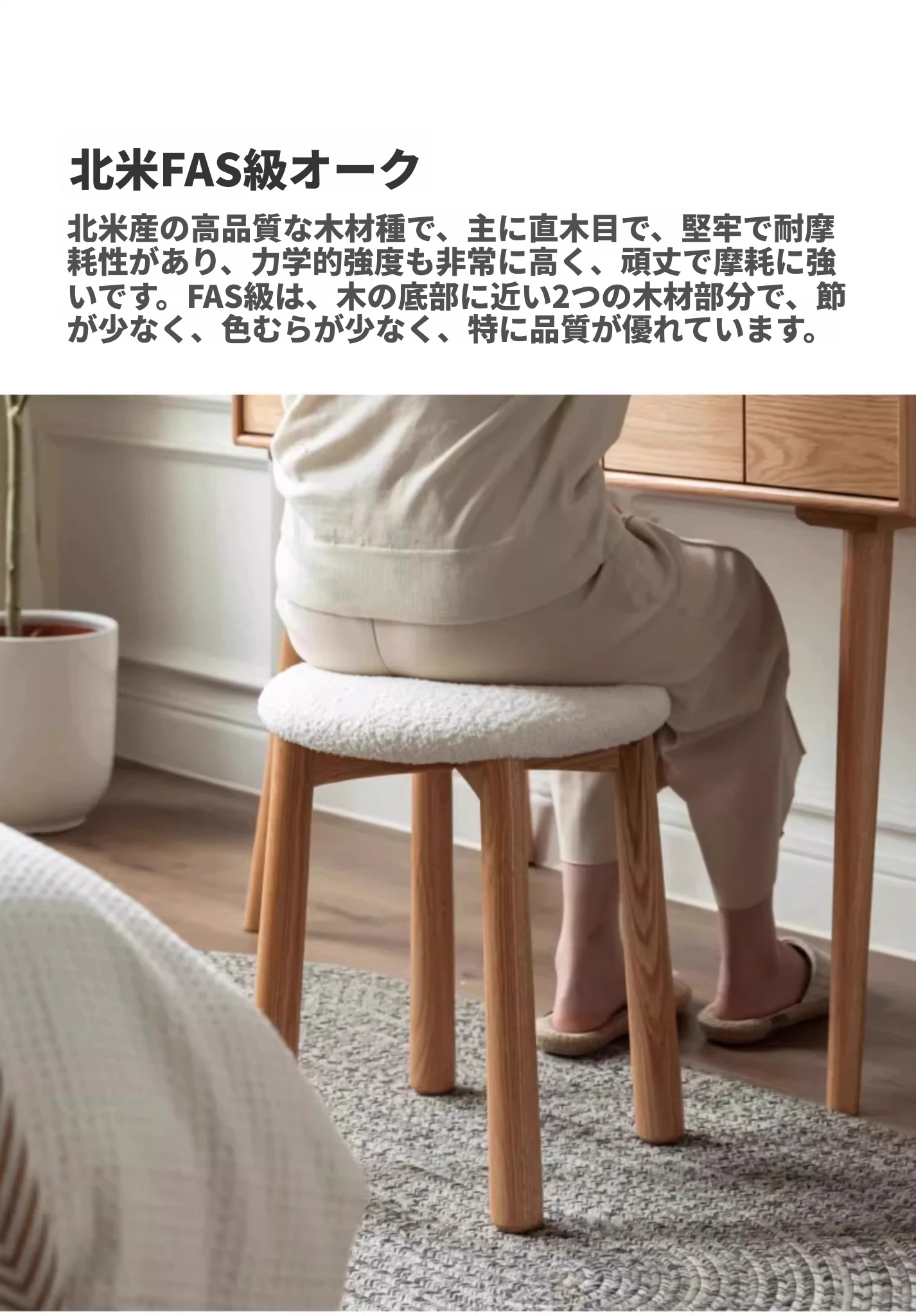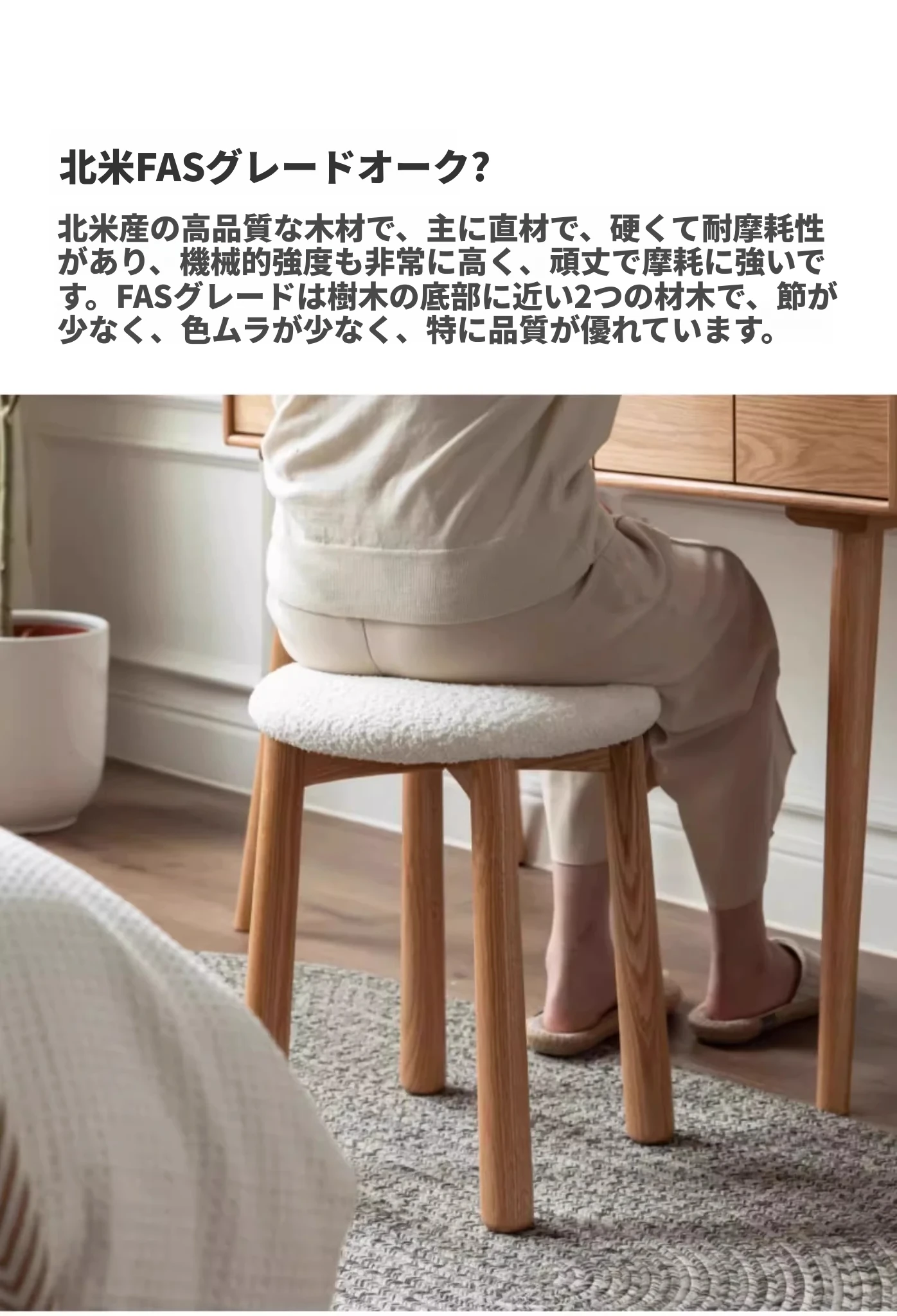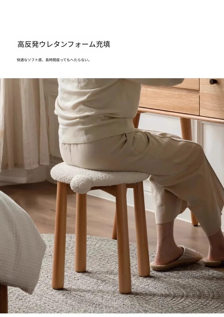 北欧風シンプルデザインのソフトパッケージ化粧台椅子|実木製・ラグジュアリーな羊毛フリース|女性の寝室にぴったりな快適な円形スツール|おしゃれで機能的な衣帽間にも最適!