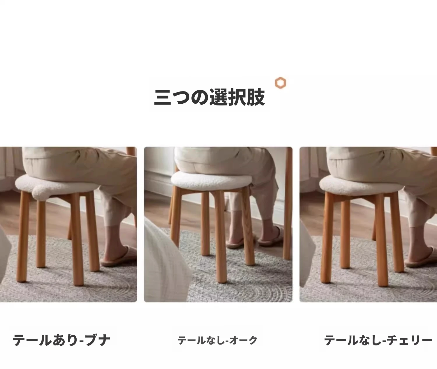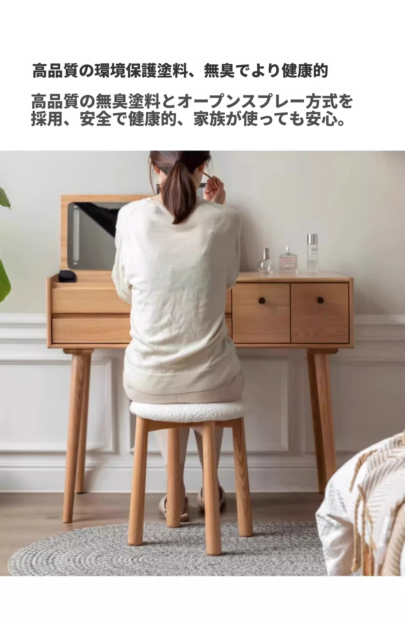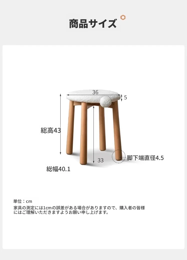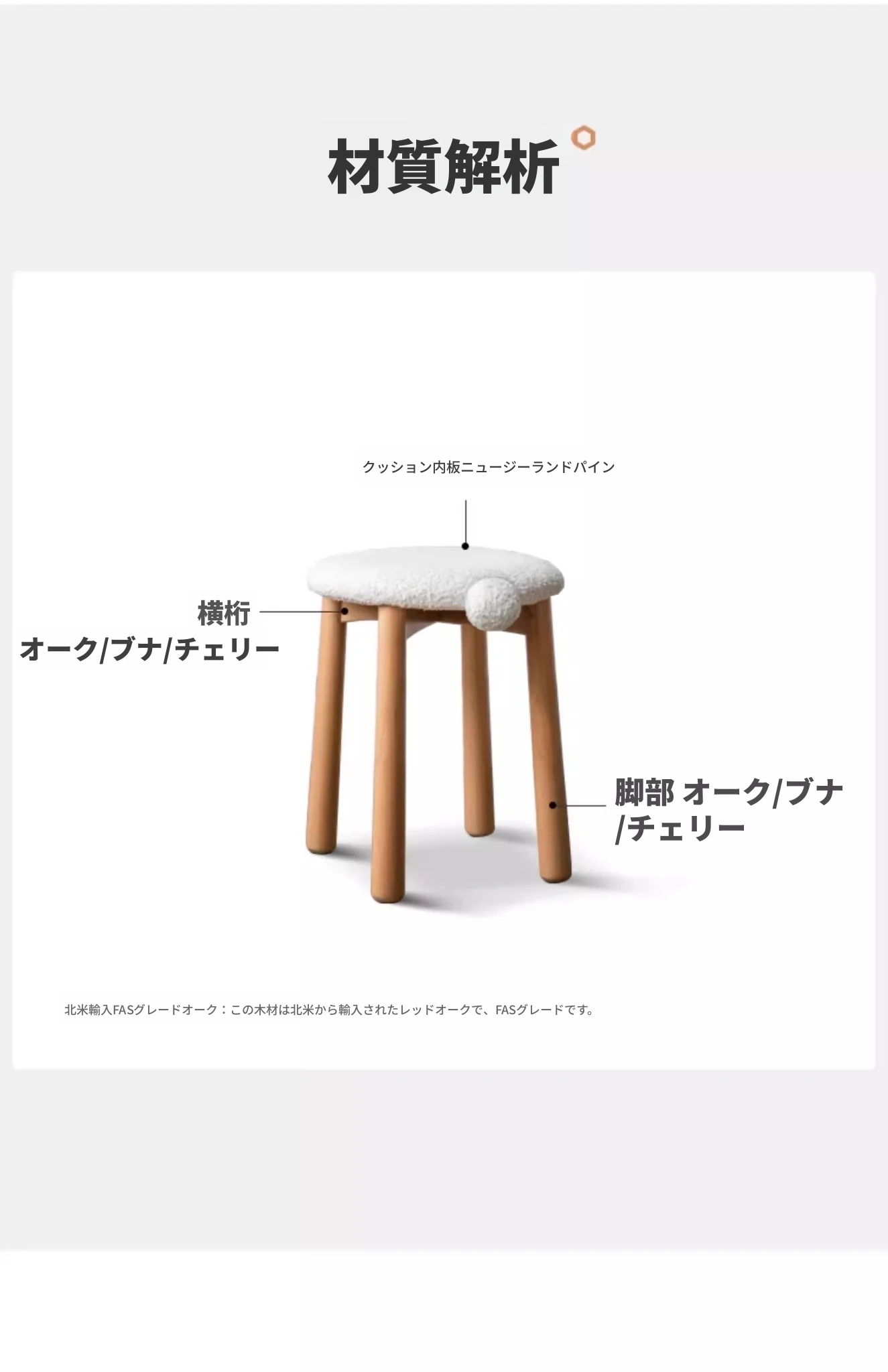 北欧風シンプルデザインのソフトパッケージ化粧台椅子|実木製・ラグジュアリーな羊毛フリース|女性の寝室にぴったりな快適な円形スツール|おしゃれで機能的な衣帽間にも最適!