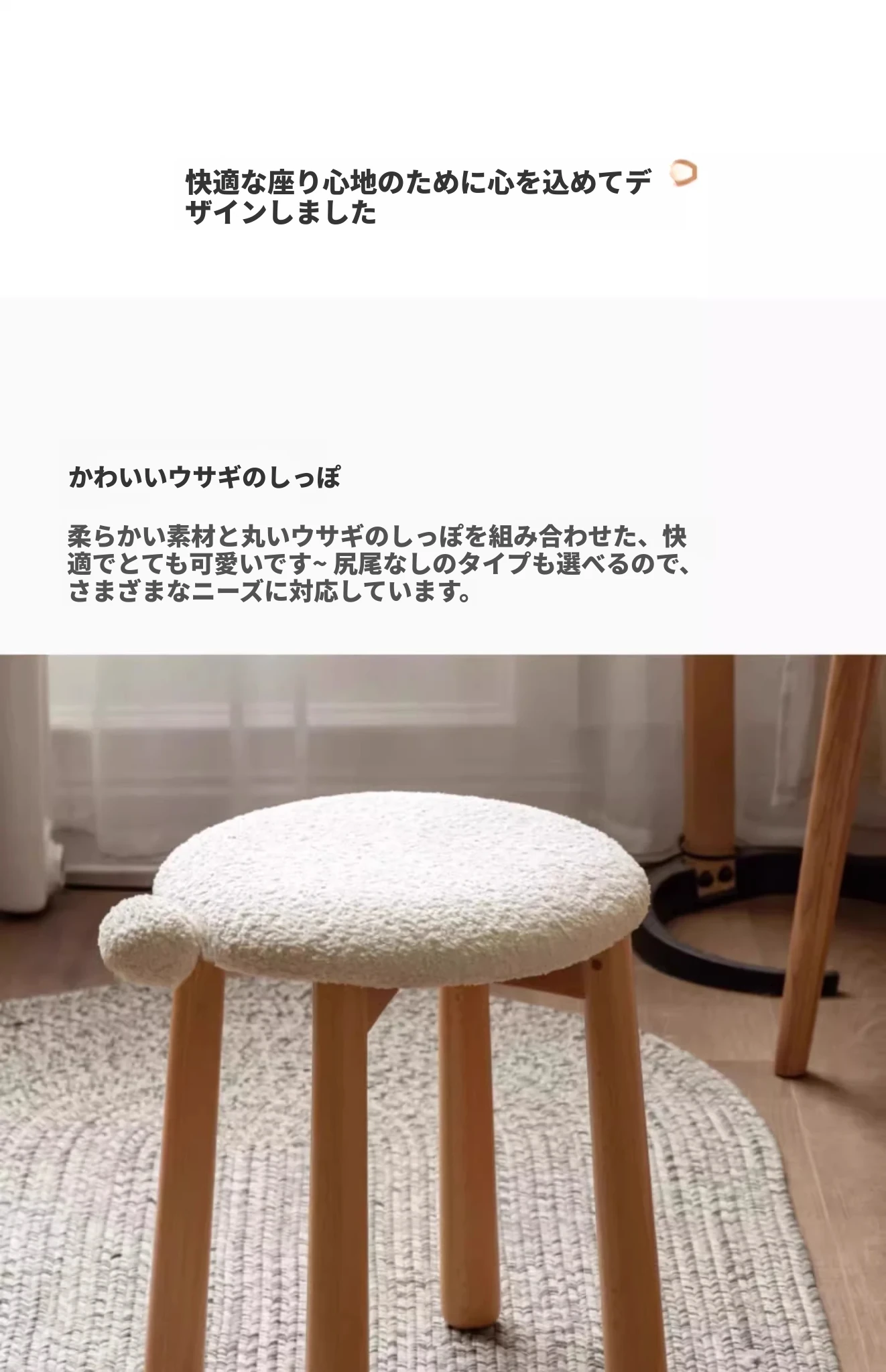 ナチュラルウッドカラーのラムフリースなしのウサギスツール ホワイト