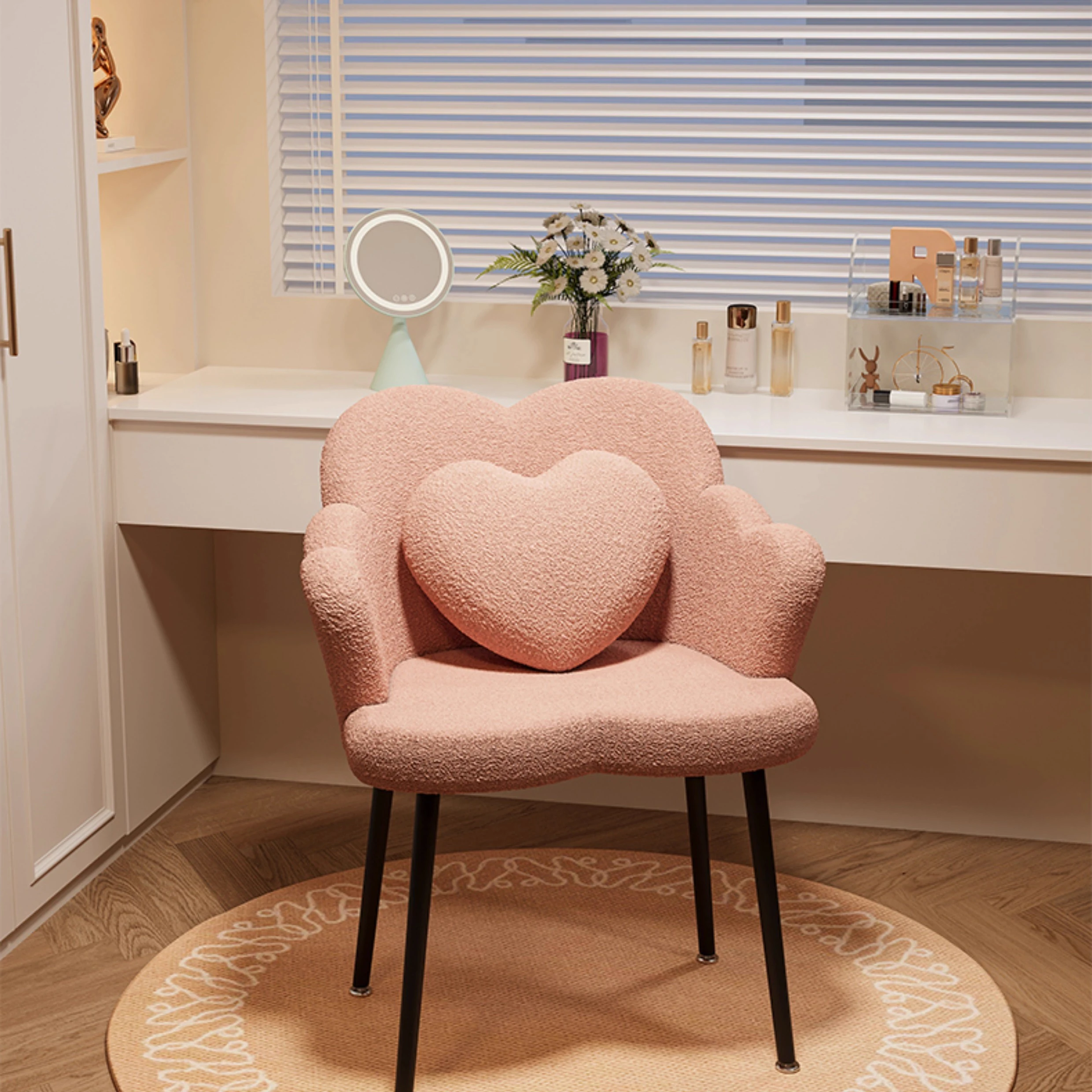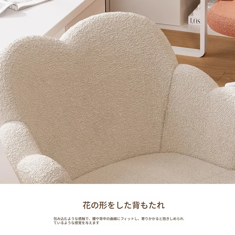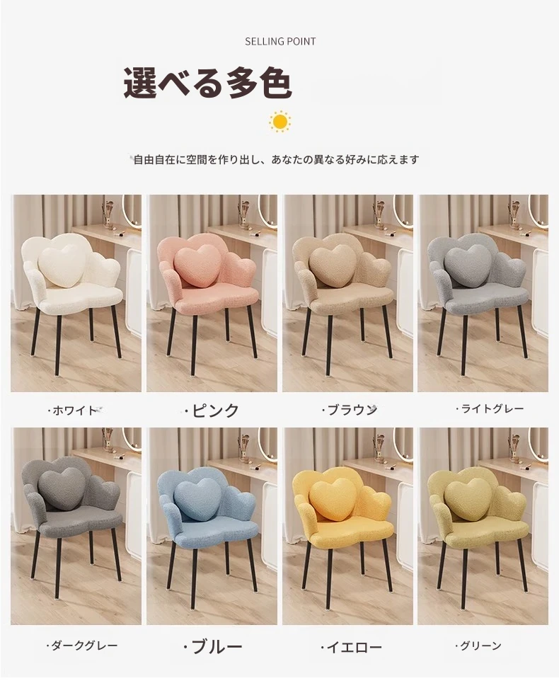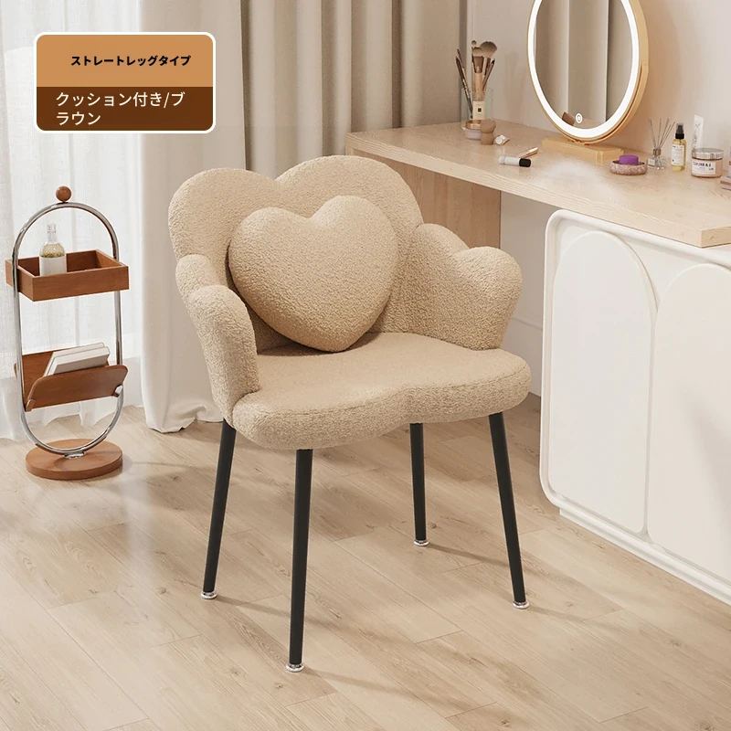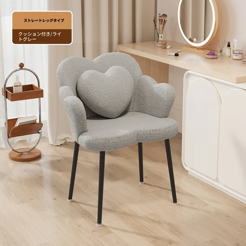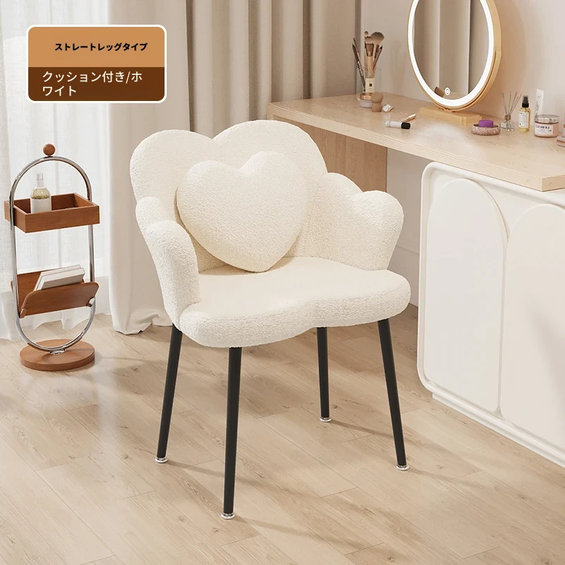 北欧風シンプル化粧椅子 - 寝室やバルコニーに最適な美しい花びらデザイン。おしゃれなメイクアップ台やネイルサロンにもぴったり!快適な背もたれで、くつろぎながら美を追求しましょう。