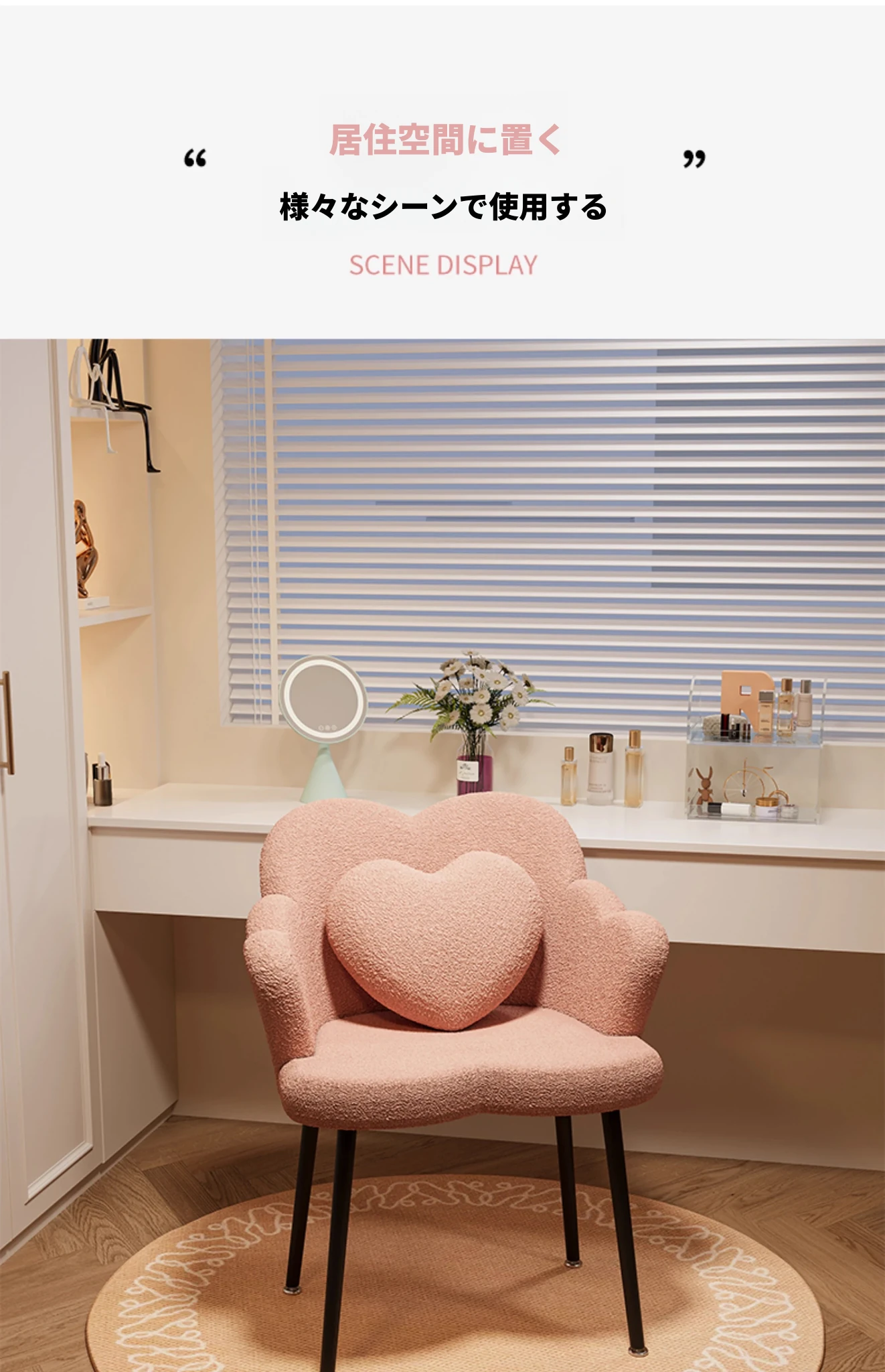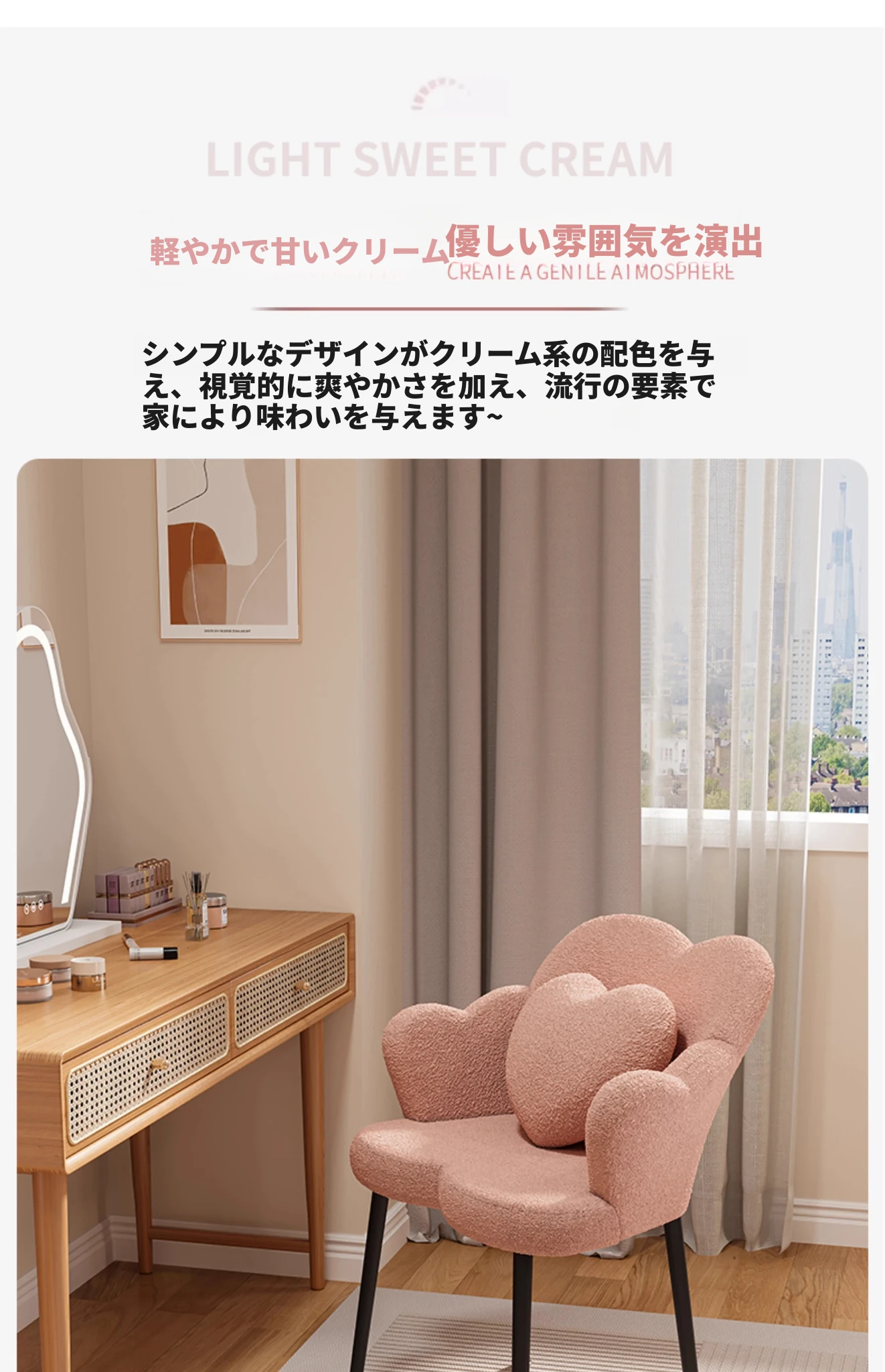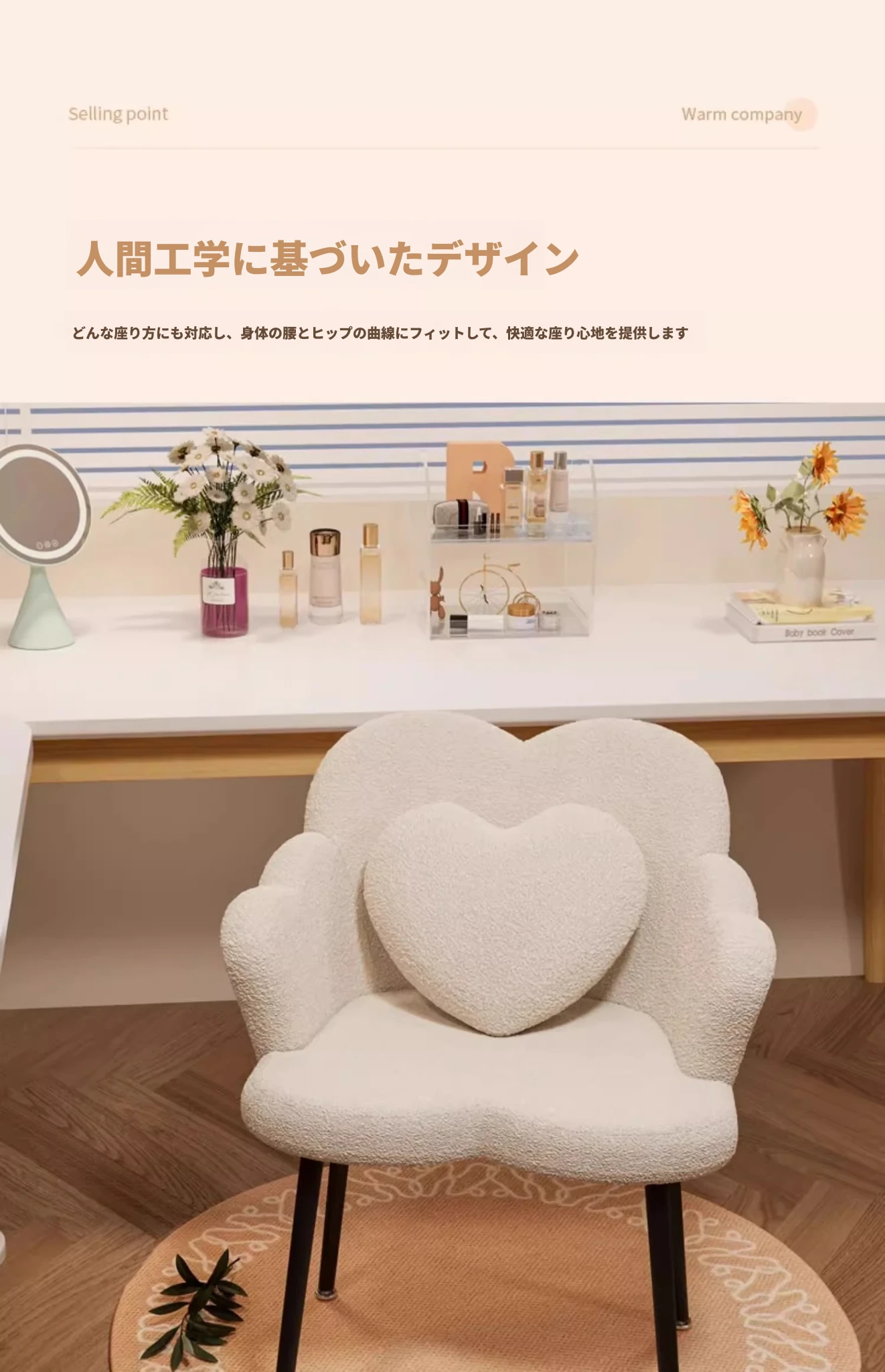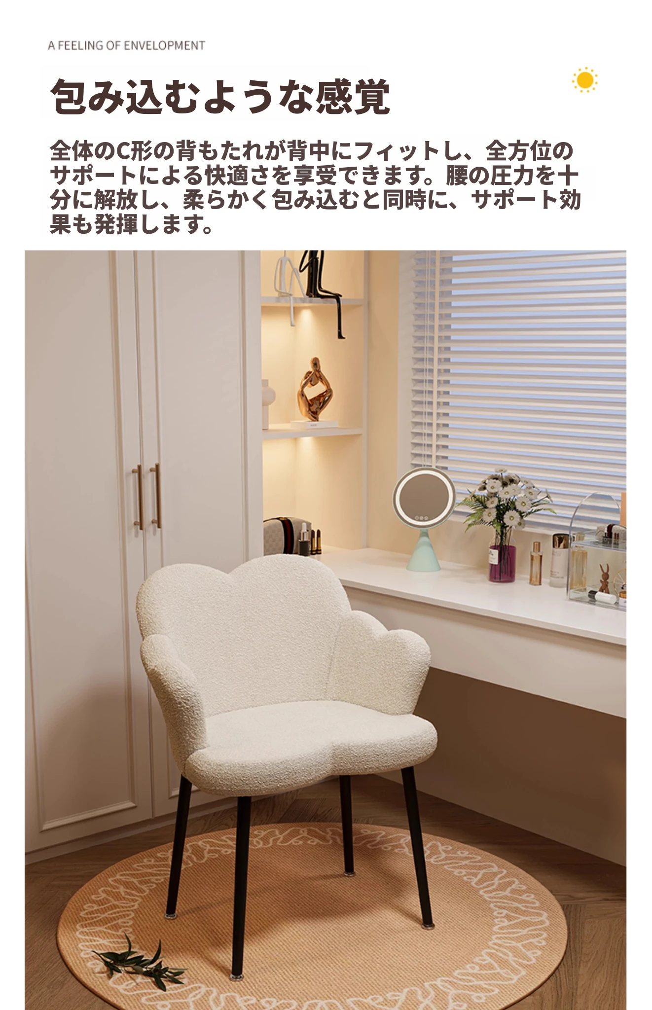 北欧風シンプル化粧椅子 - 寝室やバルコニーに最適な美しい花びらデザイン。おしゃれなメイクアップ台やネイルサロンにもぴったり!快適な背もたれで、くつろぎながら美を追求しましょう。