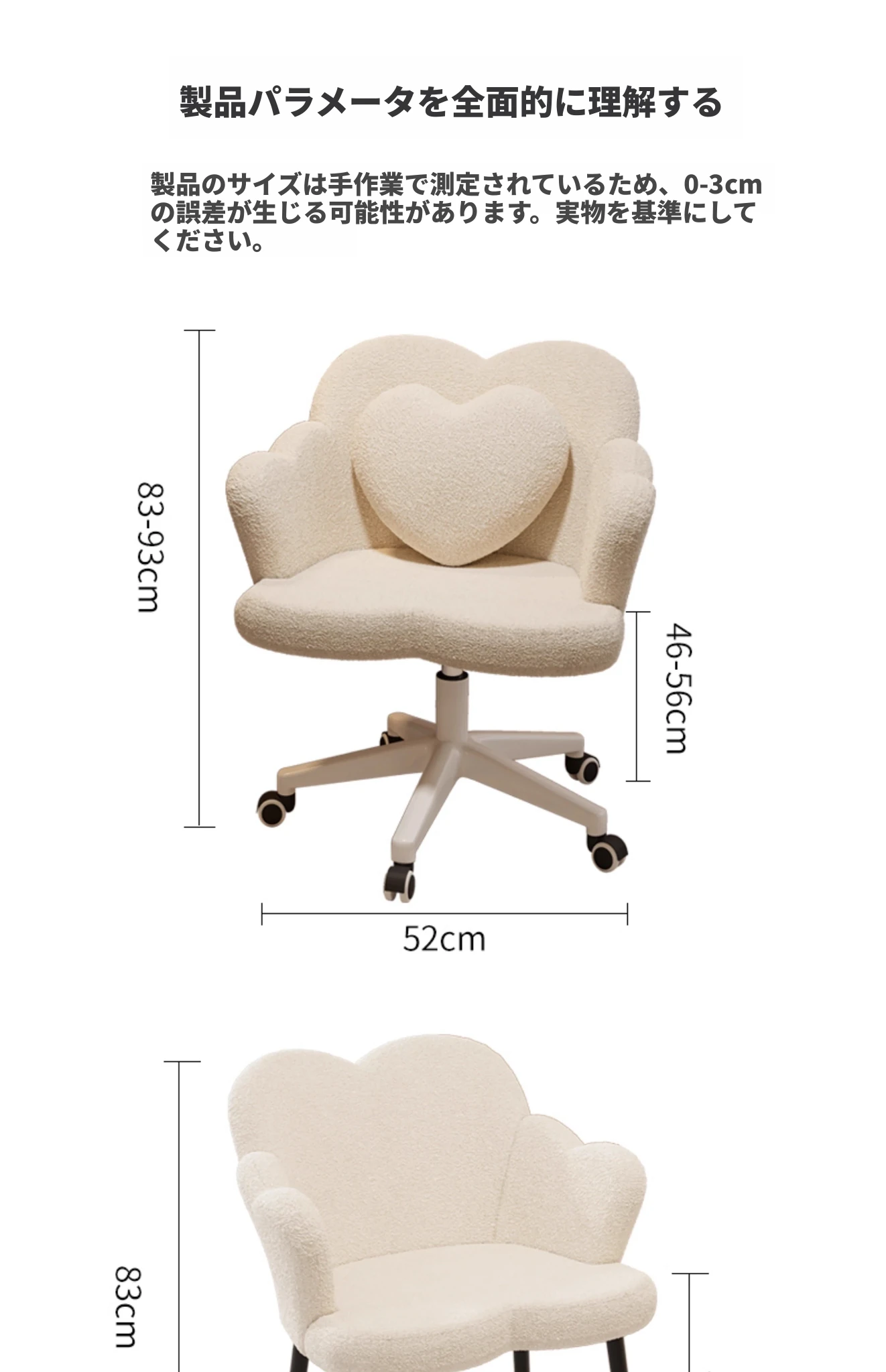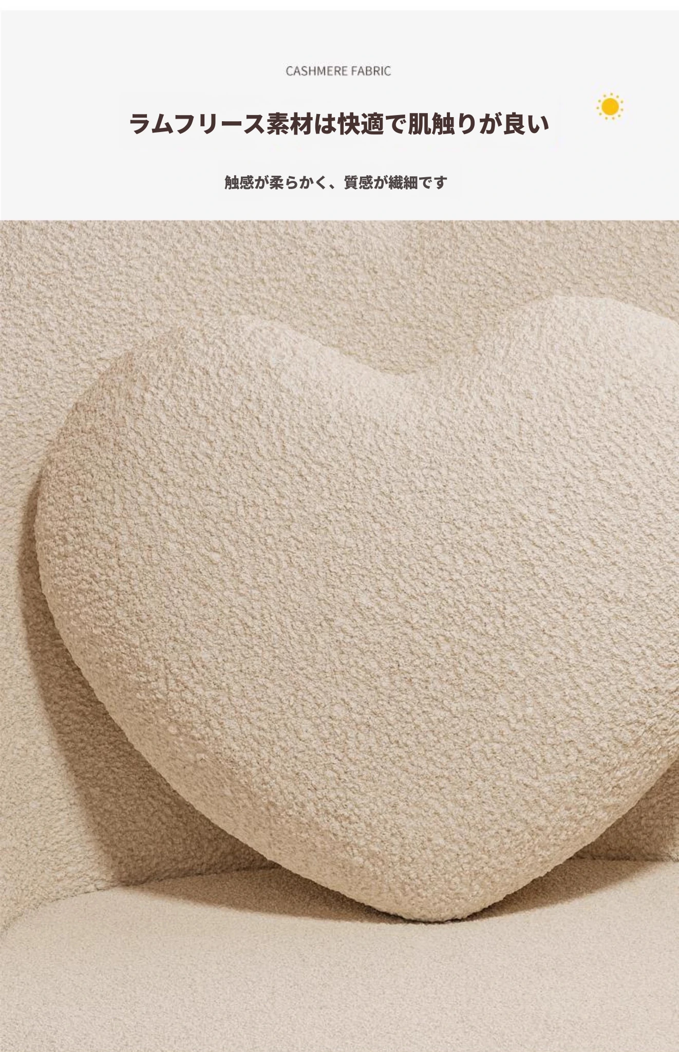 特価品*乳白色 通気性のあるラムフリース(同色のハート型クッション付き)