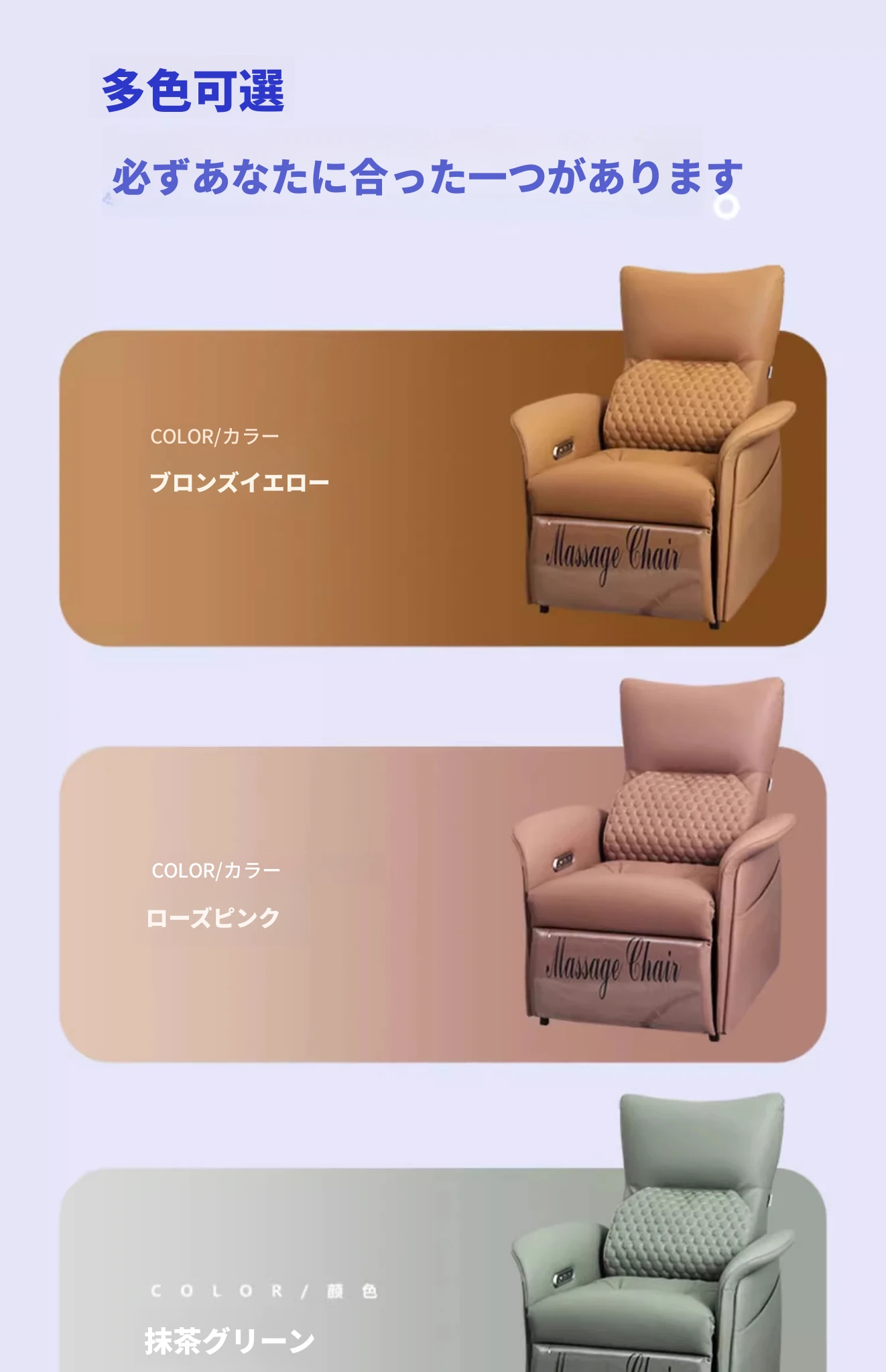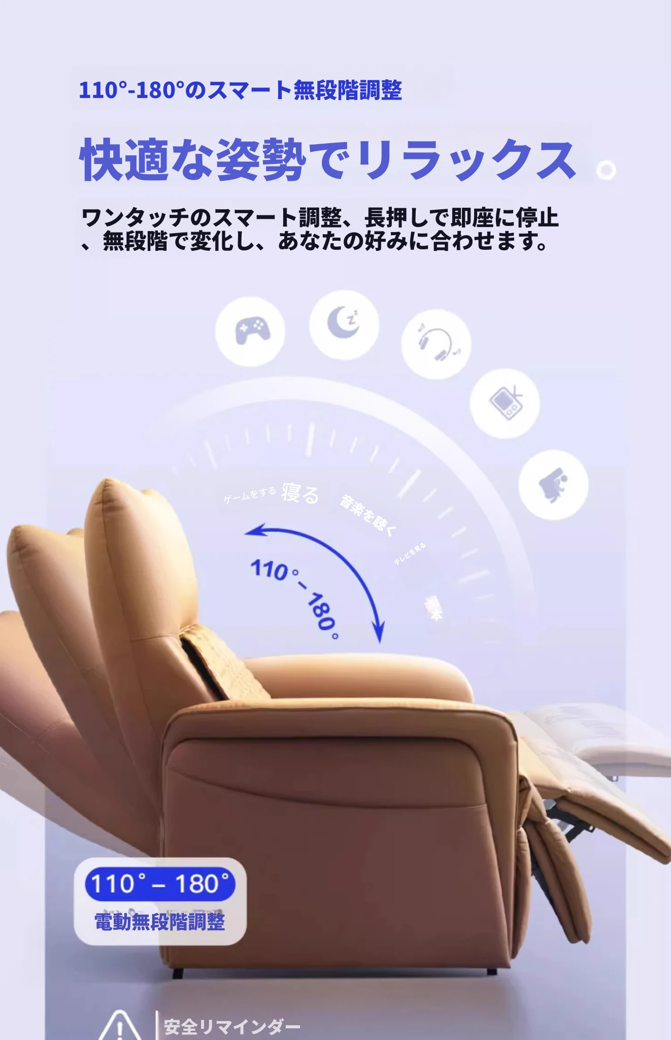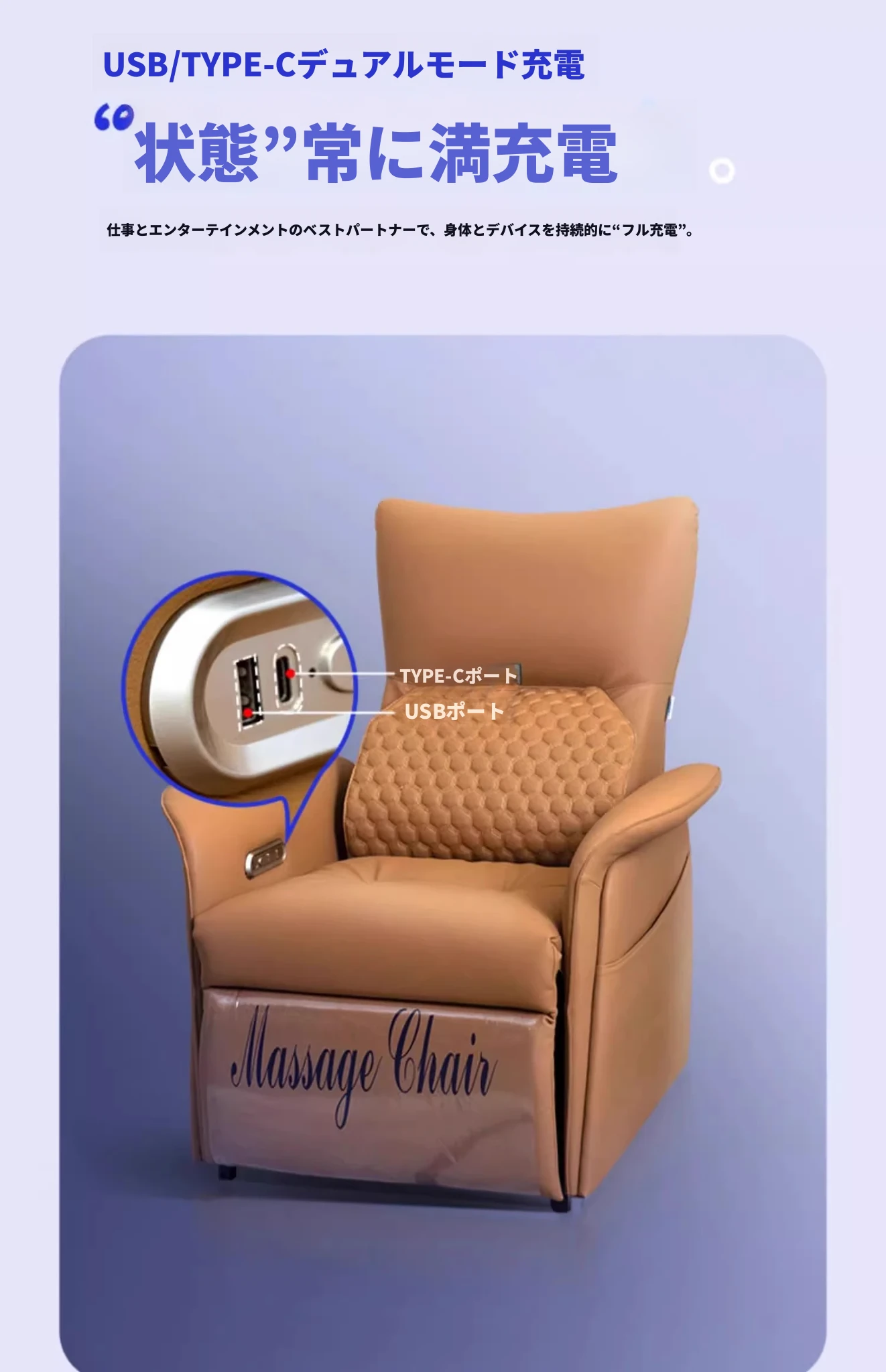 電動リクライニング+腰背マッサージ+USB/TYPE-C充電