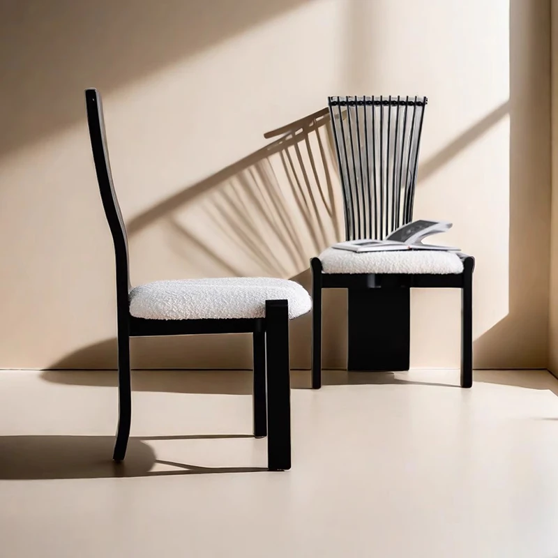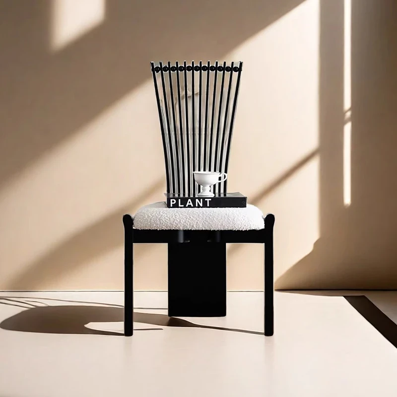 イタリアンミニマリストデザインのダイニングチェア - 高級感溢れる軽やかなスタイル、リビングやダイニングに最適!鉄製の背もたれ付きで、麻雀にもぴったりな快適さを提供します。
