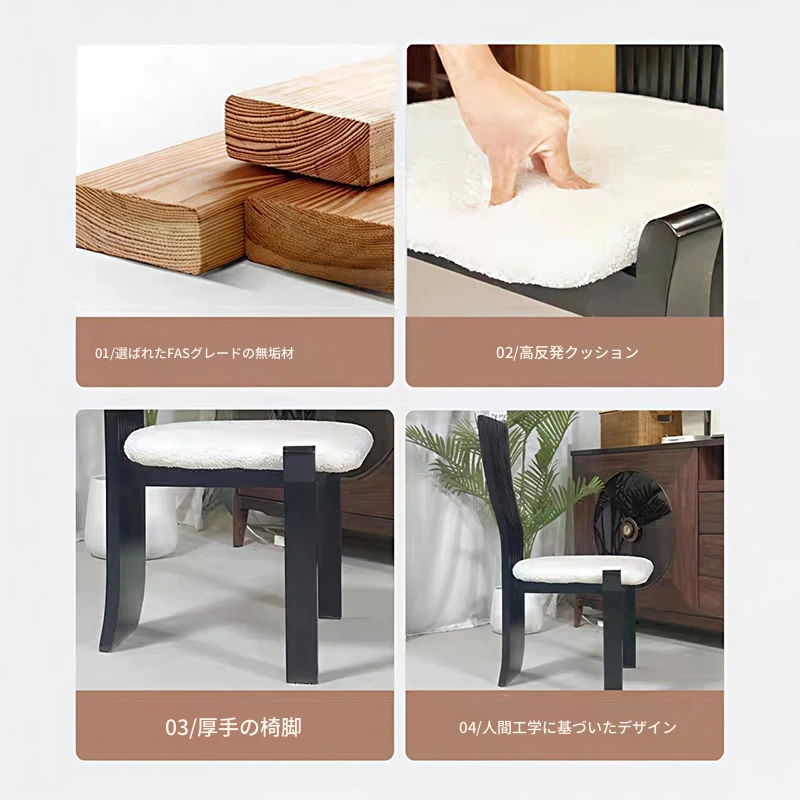 2025年新作!デザイナーズ無垢材ダイニングチェア|高級感あふれるおしゃれなティーテーブル椅子|リラックスできる背もたれ付き|家庭用化粧椅子としても最適!