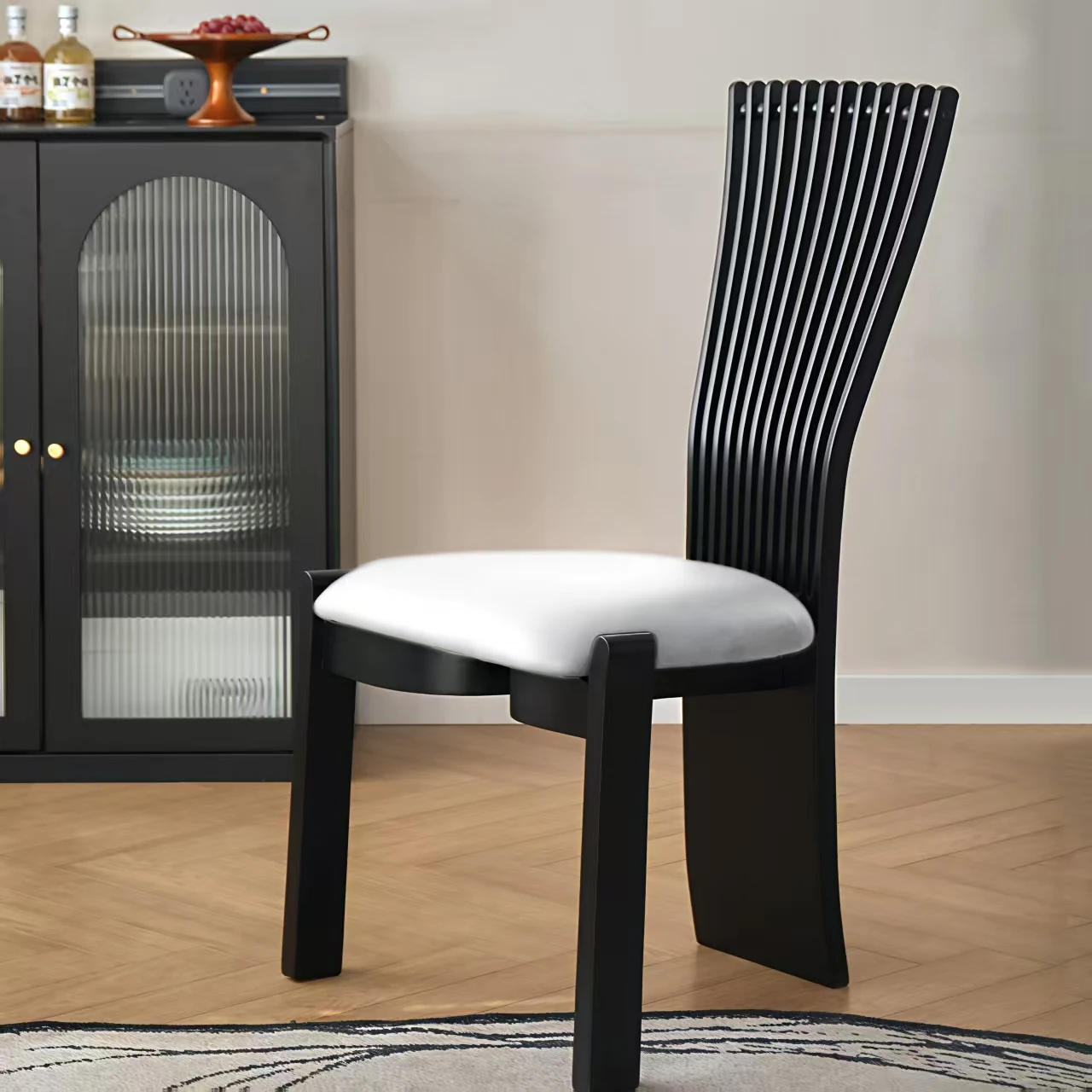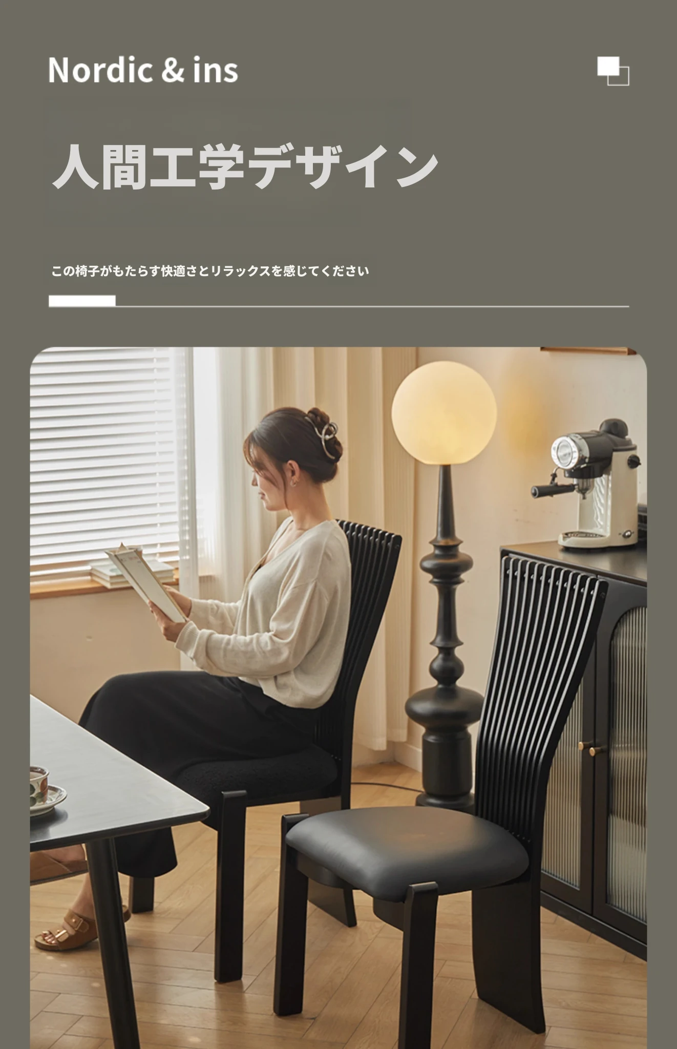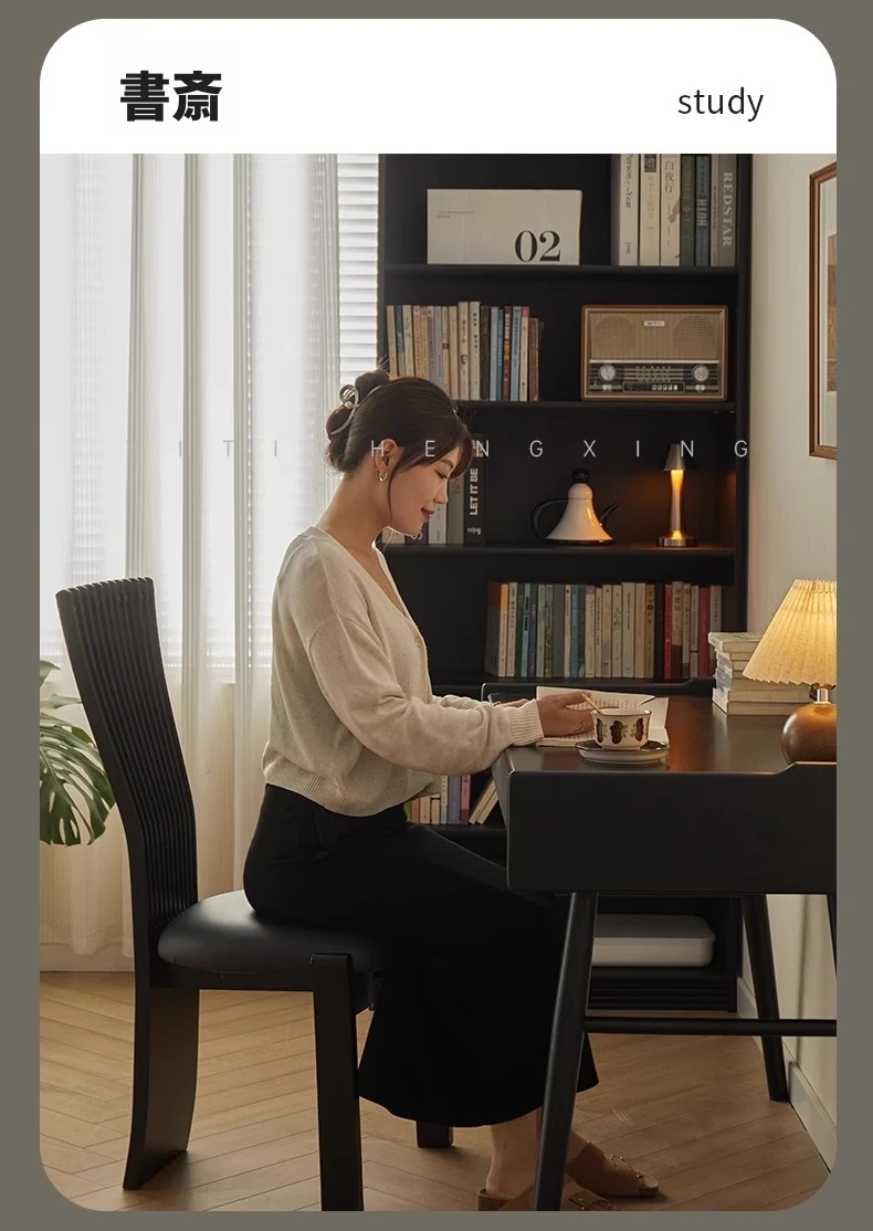 無垢材使用のダイニングチェア|シンプルで上質な一人掛け|レトロでおしゃれなデザイン|リラックスできるソフトパッケージ|家庭やレストランに最適なクリエイティブな茶椅子
