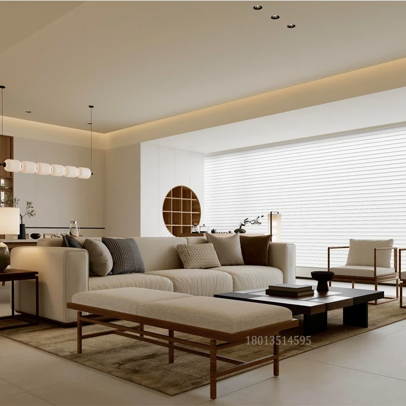 侘寂風の無垢材使用!新中式スタイルの別荘・ホテル・民宿向けデザイナーソファ。宋代美学を取り入れた洗練されたリビングソファで、心地よい癒しの空間を演出します。
