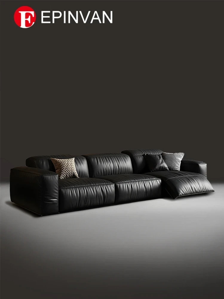 2025年新款!ブラック電動機能付き本革モジュラーソファ - 調整可能でリクライニングもできる、まるで豆腐のように柔らかい、くつろぎのリビング空間を実現!