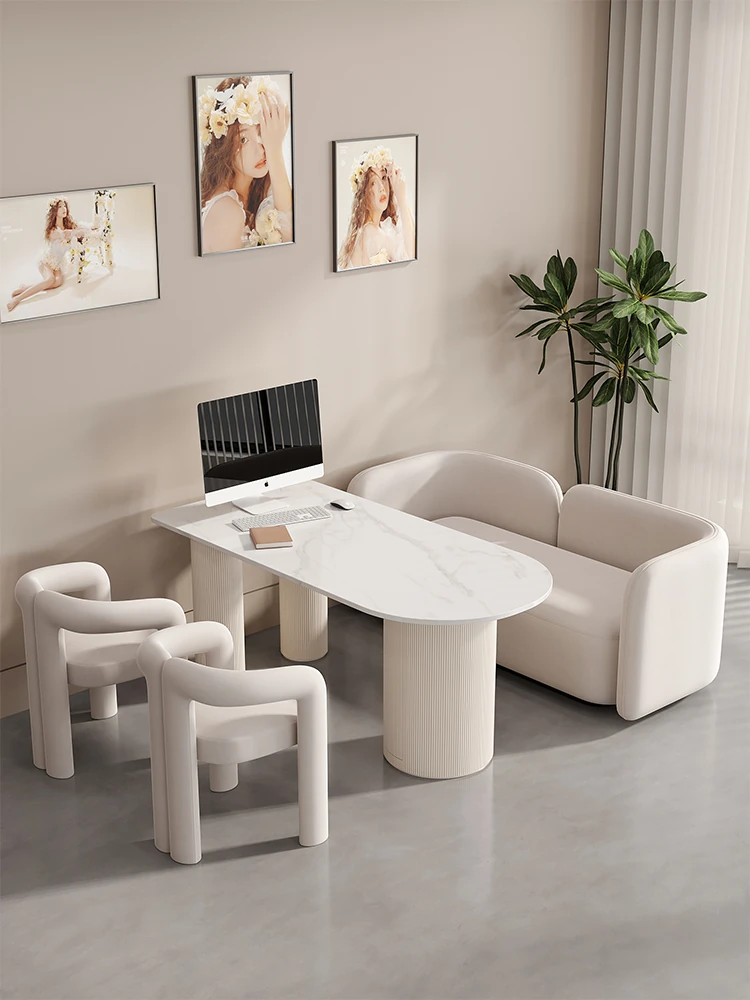 北欧風シンプルモダンリビングソファ 小型アパート向け 創造的なライトラグジュアリークリームカラー ファッションストア向け アーチ型トレンディ休憩エリア