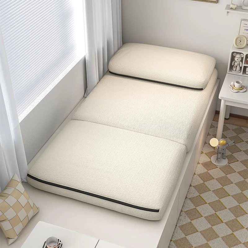 折りたたみ式多機能ソファベッド - コンパクトな小型住宅向け、マットレス付きのシンプルでおしゃれなミルクティー風デザイン。リビングや書斎にぴったり!